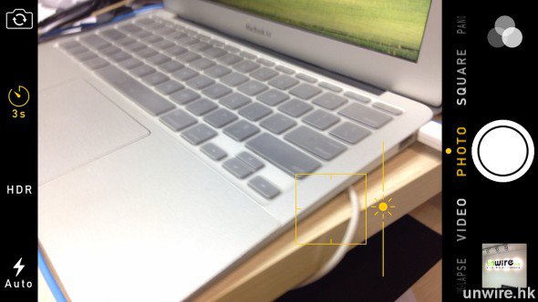 在 iOS 8 的相機對焦時將出現太陽符號,可即時調校曝光。此外亦加入 Time Lapse 縮時拍攝以及倒數拍攝,後者可方便前鏡頭自拍。