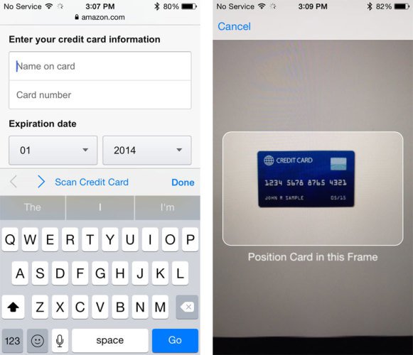 在iOS8的Safari提醒你要輸入信用卡時,可利用「Scan Credit Card」功能,可Scar下信用卡,手機便會自動幫你填入資訊。雖實用性不大,但可避免一些Key Logger程式如iKeyMonitor。